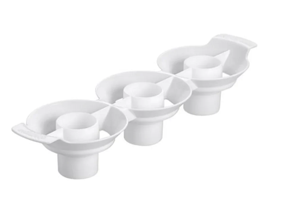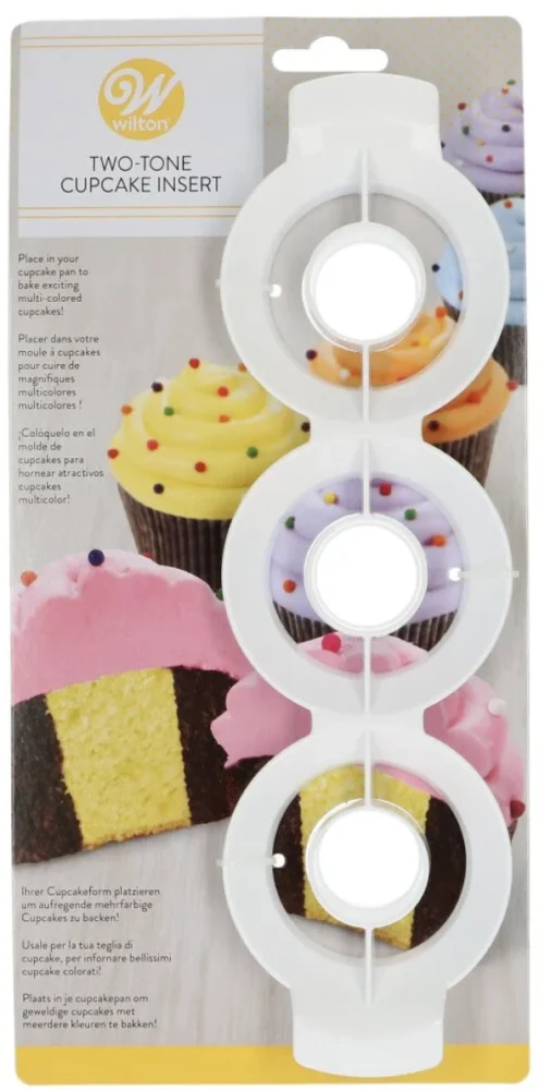 Dzięki tej wkładce z łatwością napełnisz swoje foremki ciastem w dwóch kolorach. Wkład nie nadaje się do piekarnika! Pasuje do standardowych foremek na babeczki/muffiny.