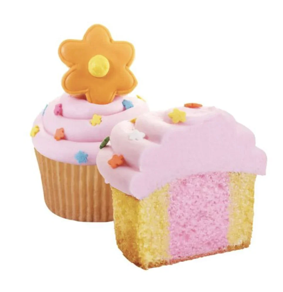 Upiecz olśniewające babeczki dzięki dwukolorowej wkładce do babeczek firmy Wilton.